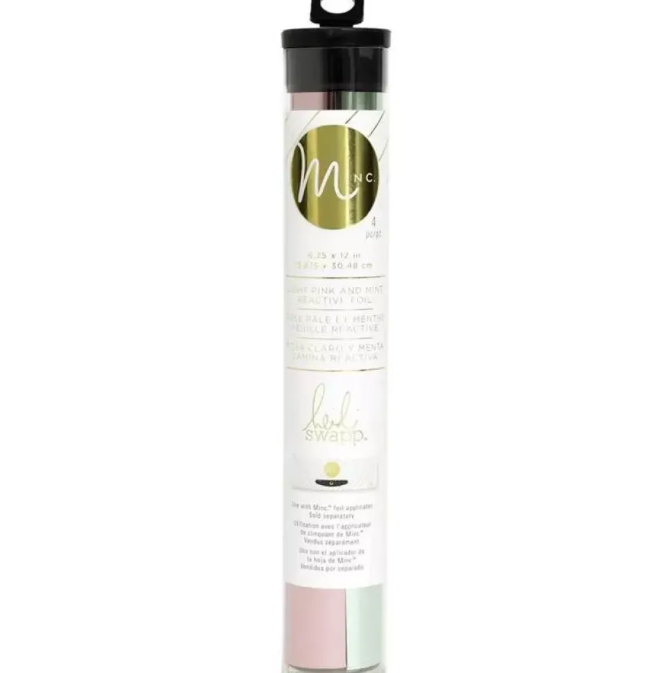Rollo que contiene foil metalizado reactivo de color menta y rosa claro de tamaño 15×30 cm. Añade una textura única a tus proyectos con la Minc Metallic Foil Applicator de Heidi Swapp.