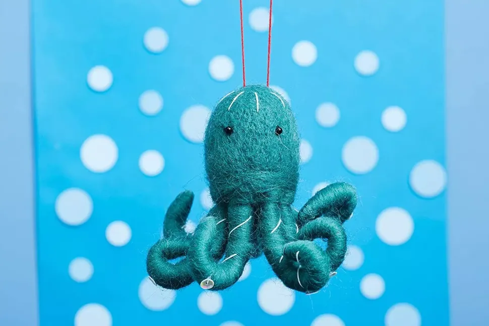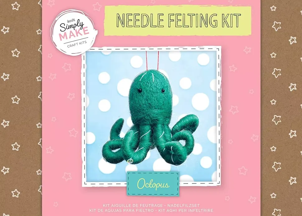 - Kit con todos los elementos necesarios para realizar una figura de fieltro. Todos los elementos vienen en una bonita caja decorada con estrellas, lo que lo convierte en un regalo perfecto.