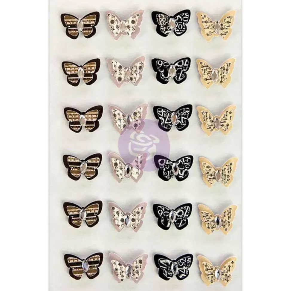 Maravillosas mariposas para agregar un pequeño y bonito diseño para cualquier proyecto de tarjetería, scrapbooking, mixed media, smashbook, Lay Outs, etc. Las mariposas son de colores negro, crema y lila formado por dos capas con una gema en el centro.