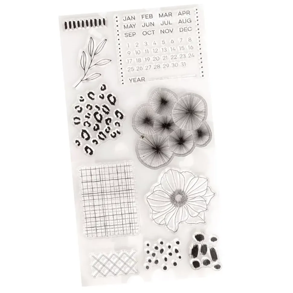 - Contiene 10 sellos con ilustraciones de motivos vegetales, calendario, flores, patrón de leopardo y ¡más!