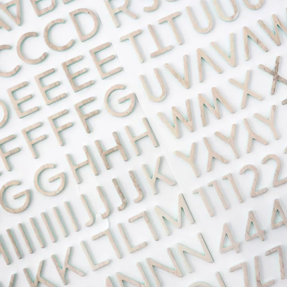 - Incluye 158 letras mayúsculas, números y símbolos con estampado de madera.