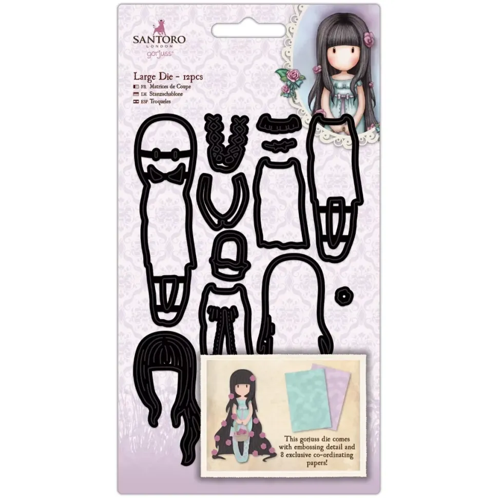 - Contiene un muñeca Gorjuss con diferentes elementos para superponer y con detalles de embossing.