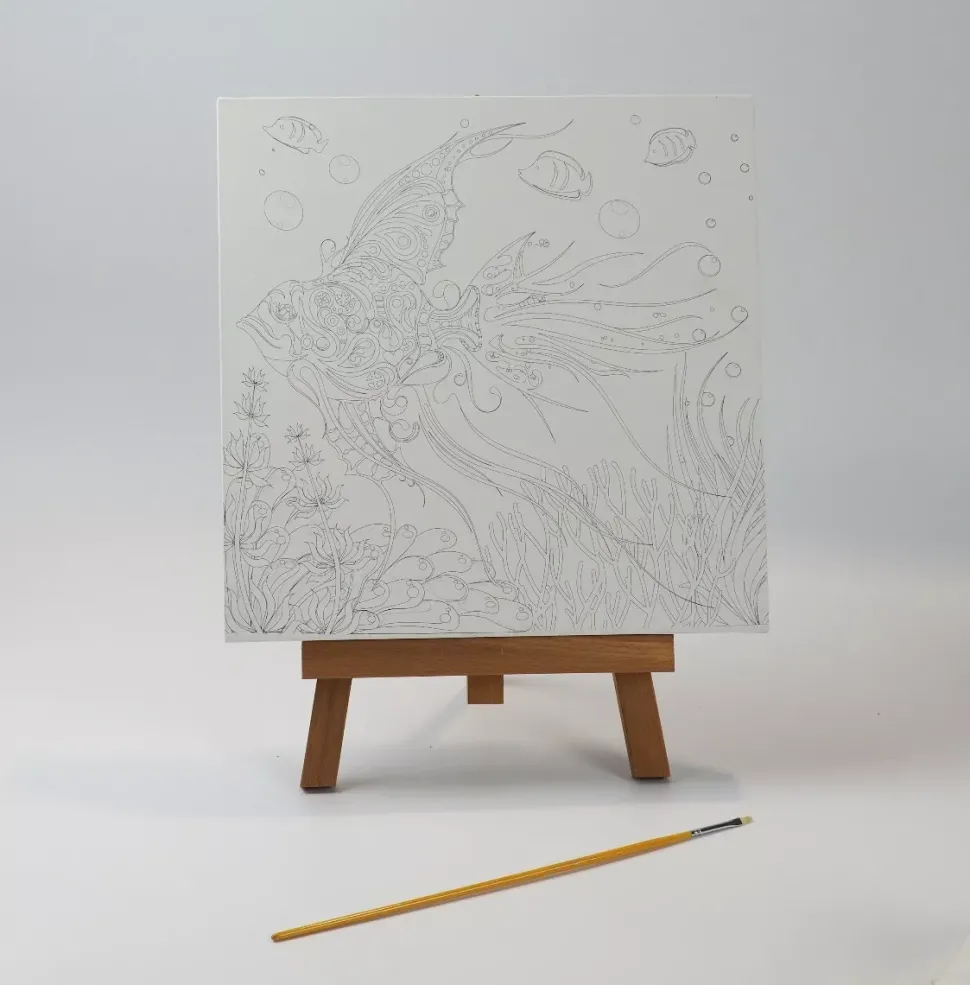 - Bastidor entelado preimpreso con motivos perfilados en línea negra para colorear.