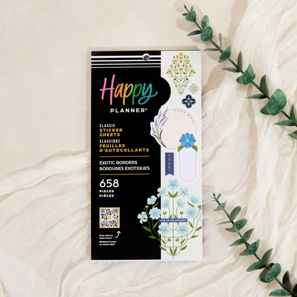 - Mantente organizado y animado con este paquete de pegatinas de 30 hojas con diseños florales descorativos, cajas de notas, banderines o recordatorios.