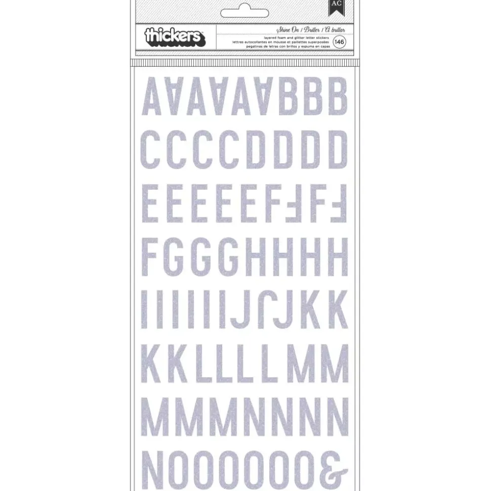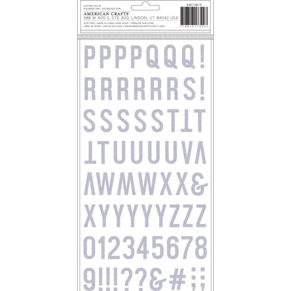 - Incluye 146 letras mayúsculas, números y símbolos con foil plateado.