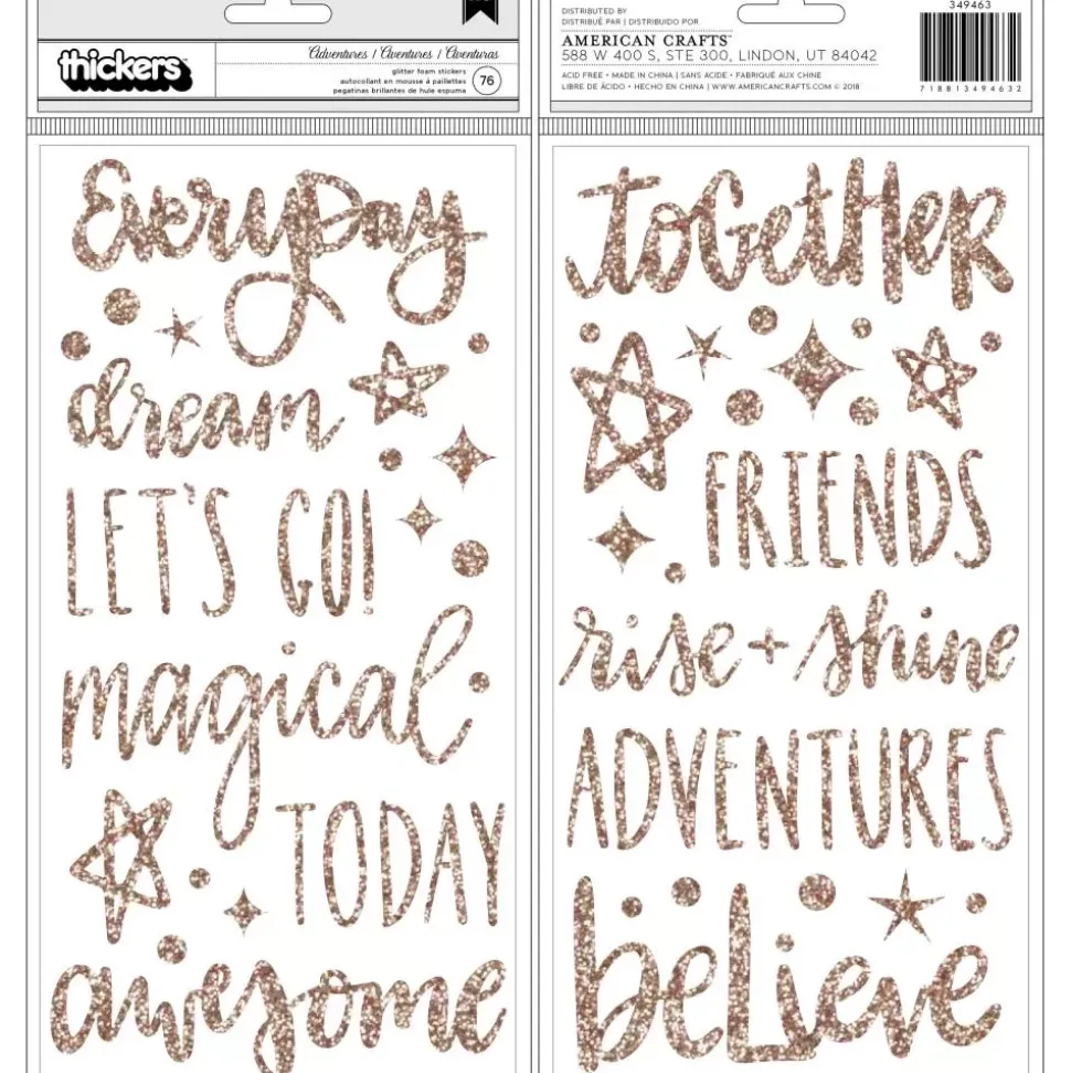 - Incluye 76 piezas que incluyen estrellas, lunares, y frases como everyday, together, dream, friedns, magical, today, adventures, etc.