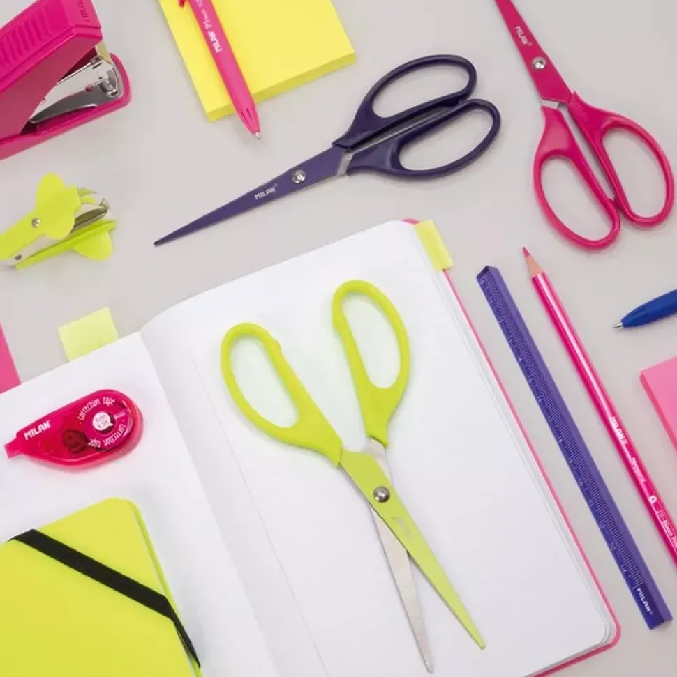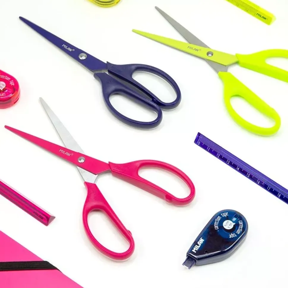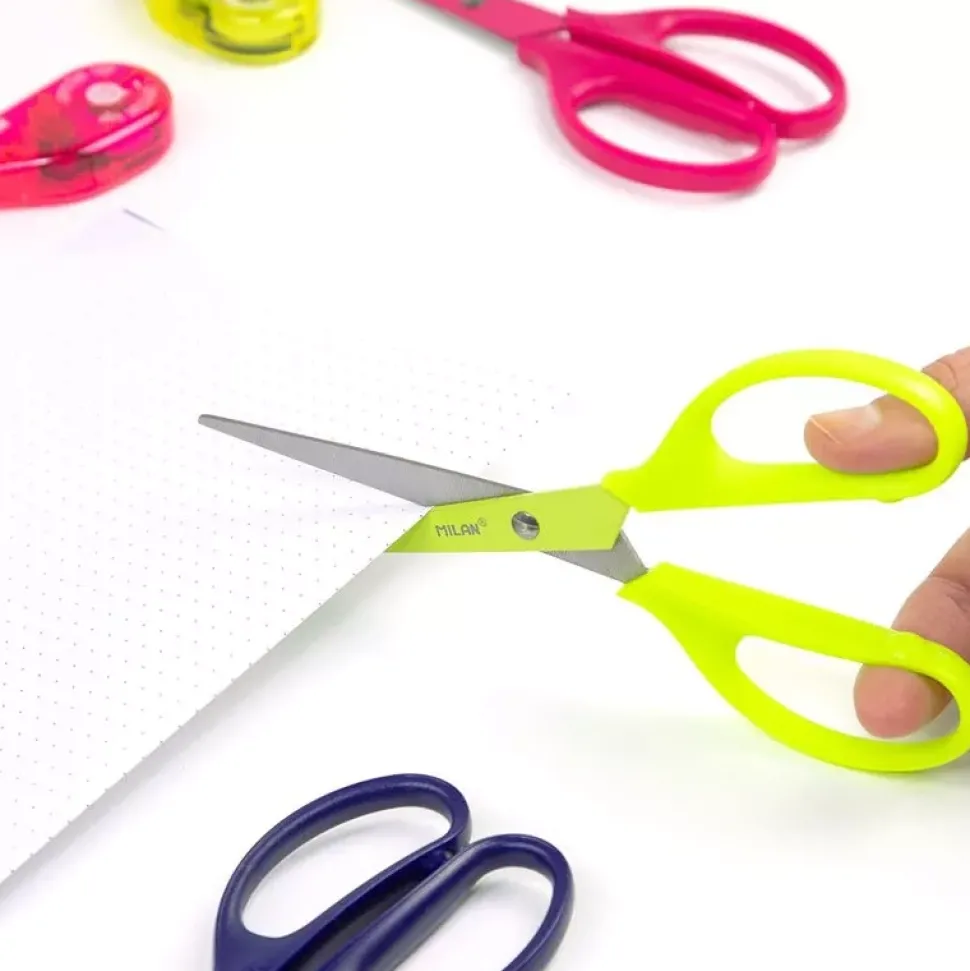 Tijeras de oficina con la hoja del mismo color que la empuñadura.