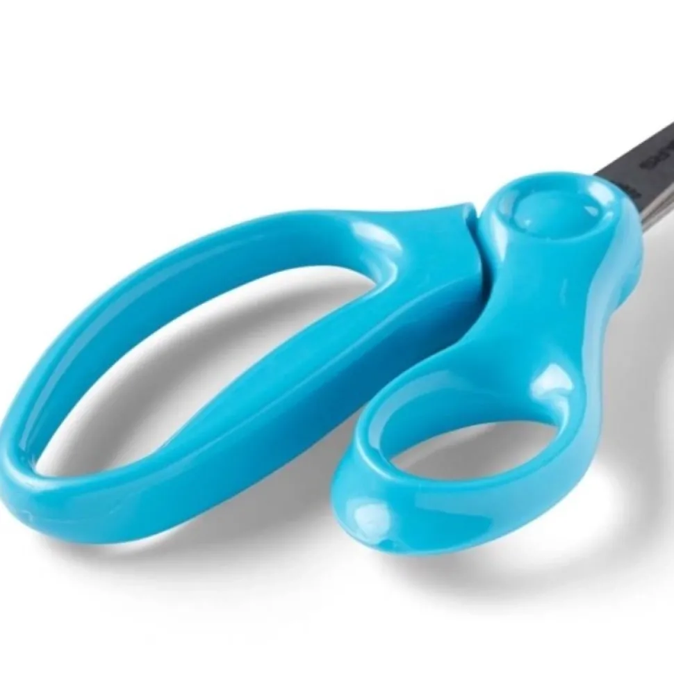- Las tijeras de punta roma para niños incorporan un mango diseñado especialmente para niños, así como hojas de seguridad con un ángulo de corte más seguro.