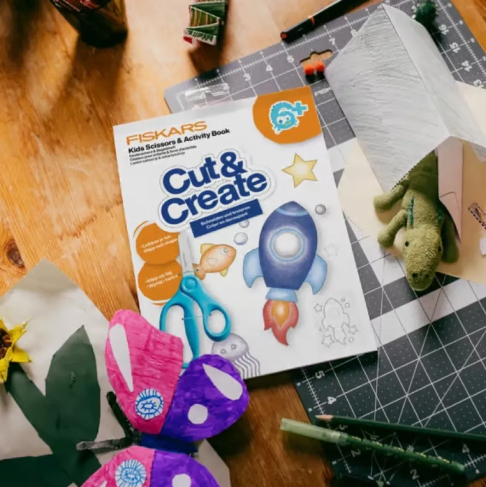 Tijeras Punta Redonda y Libro de Actividades Fiskars