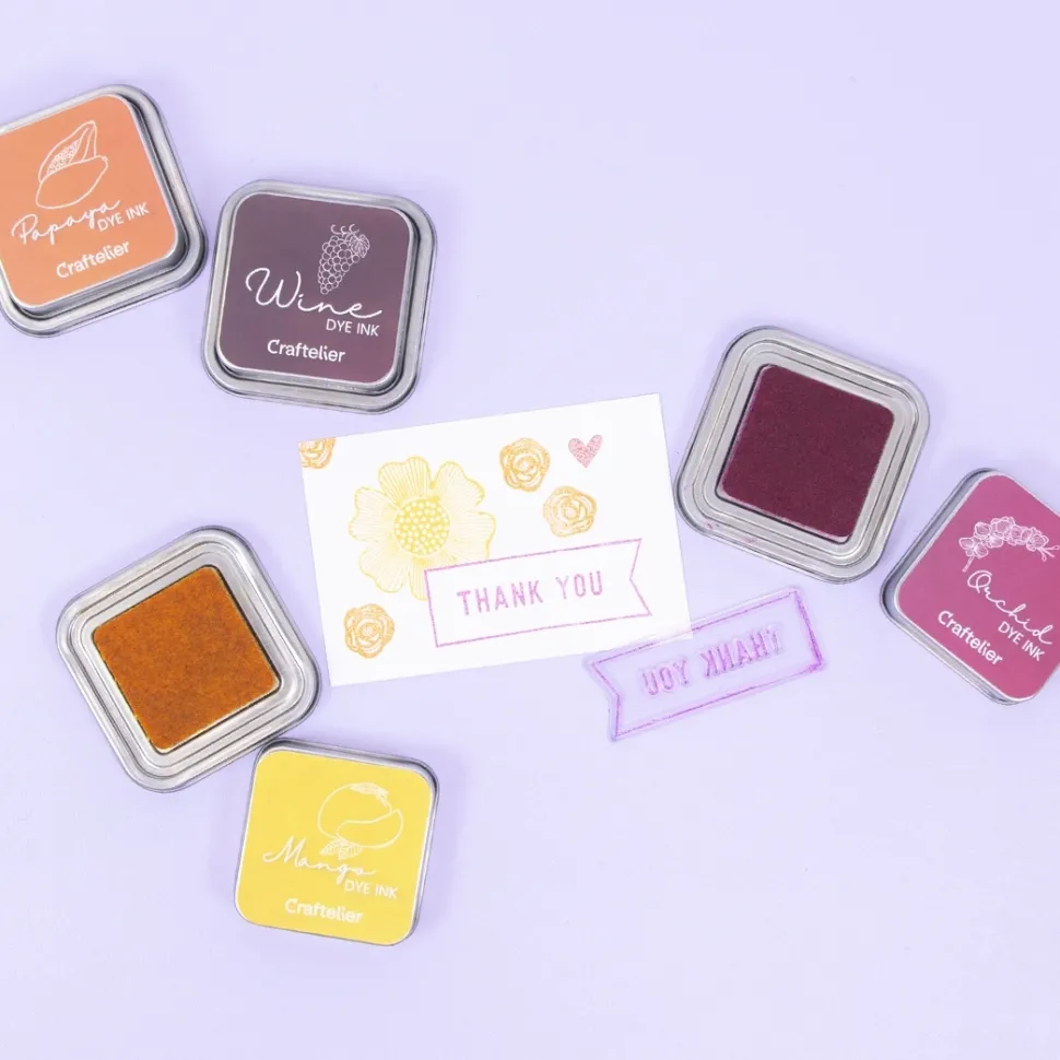 - Es una tinta tipo dye con base al agua, perfecta para estampar tanto con sellos acrílicos como con sellos de caucho.