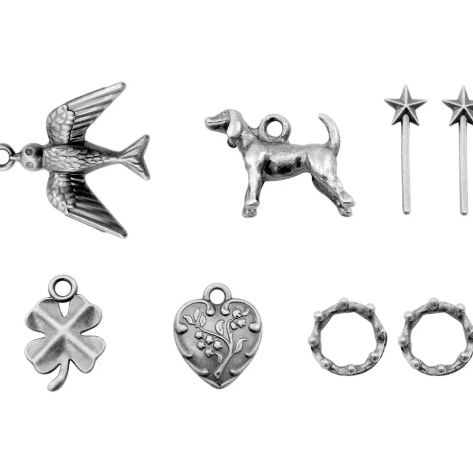 - Contiene 8 diseños de golondrina, perro, estrellas, trébol, corazón y anillos.