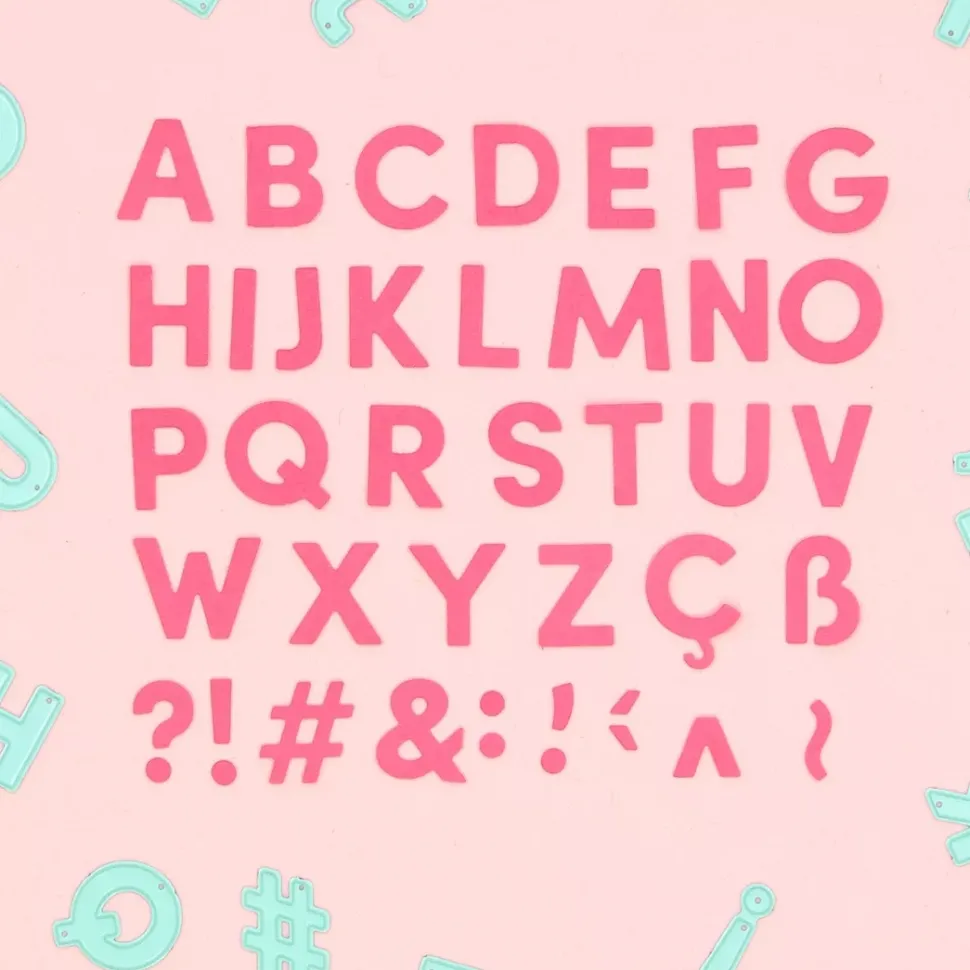 - Contiene 39 troqueles para realizar un abecedario y símbolos.