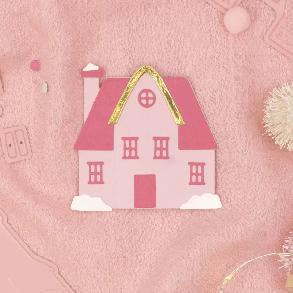 - Los troqueles incluyen relieve para poder hacer detalles en embossing: las tejas del tejado o los elementos decorativos de la puerta.