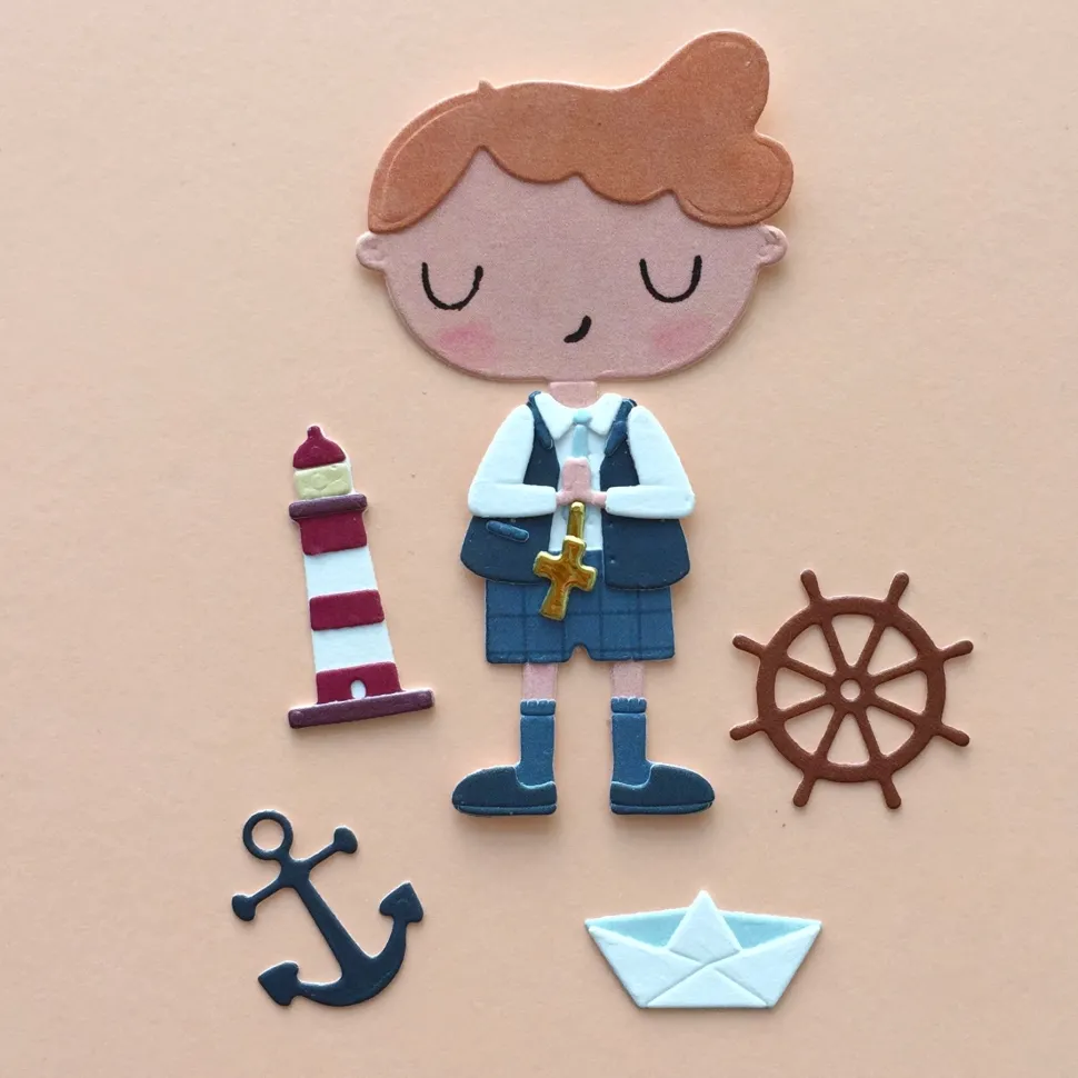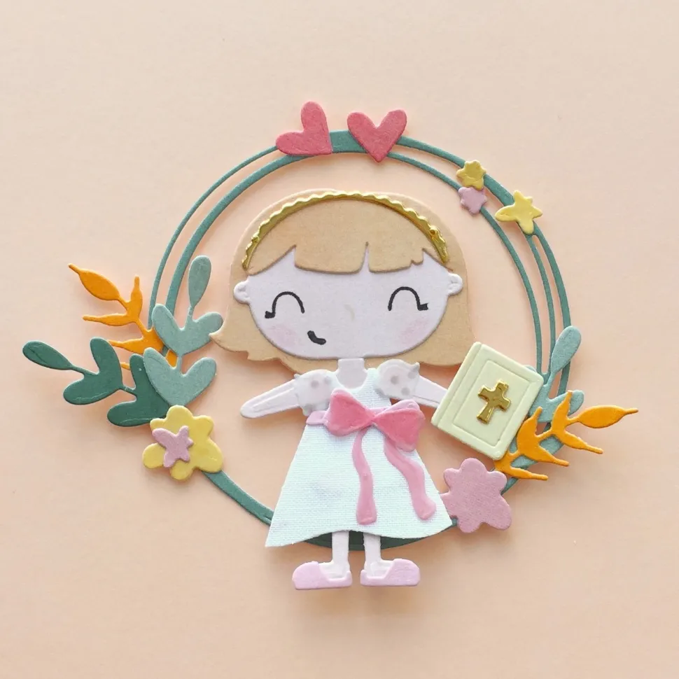 - Combínalo con los troqueles cuerpo y pelucas Noa, con el sello emojis y el troquel de ropa de comunión.