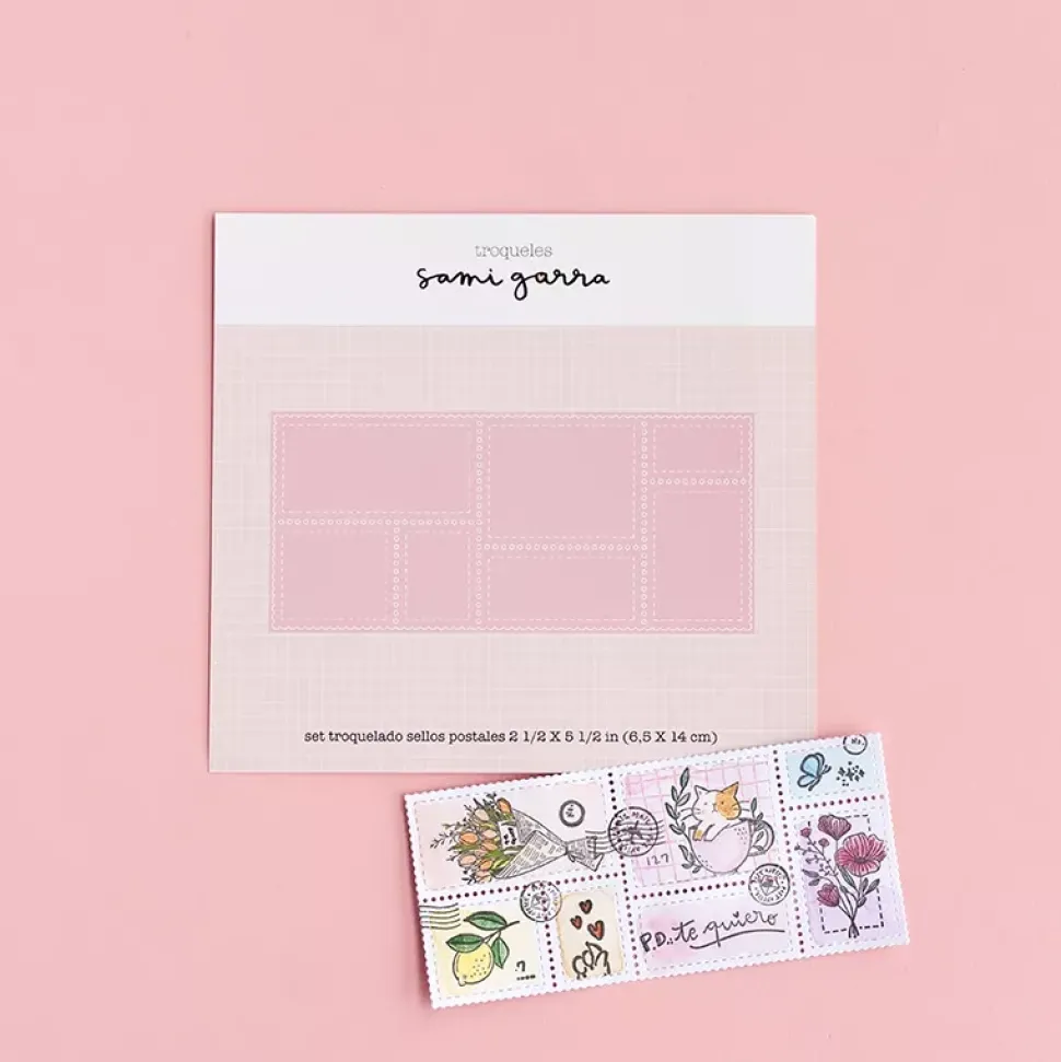 - Troquel con diseño de sellos postales con diferentes tamaños.