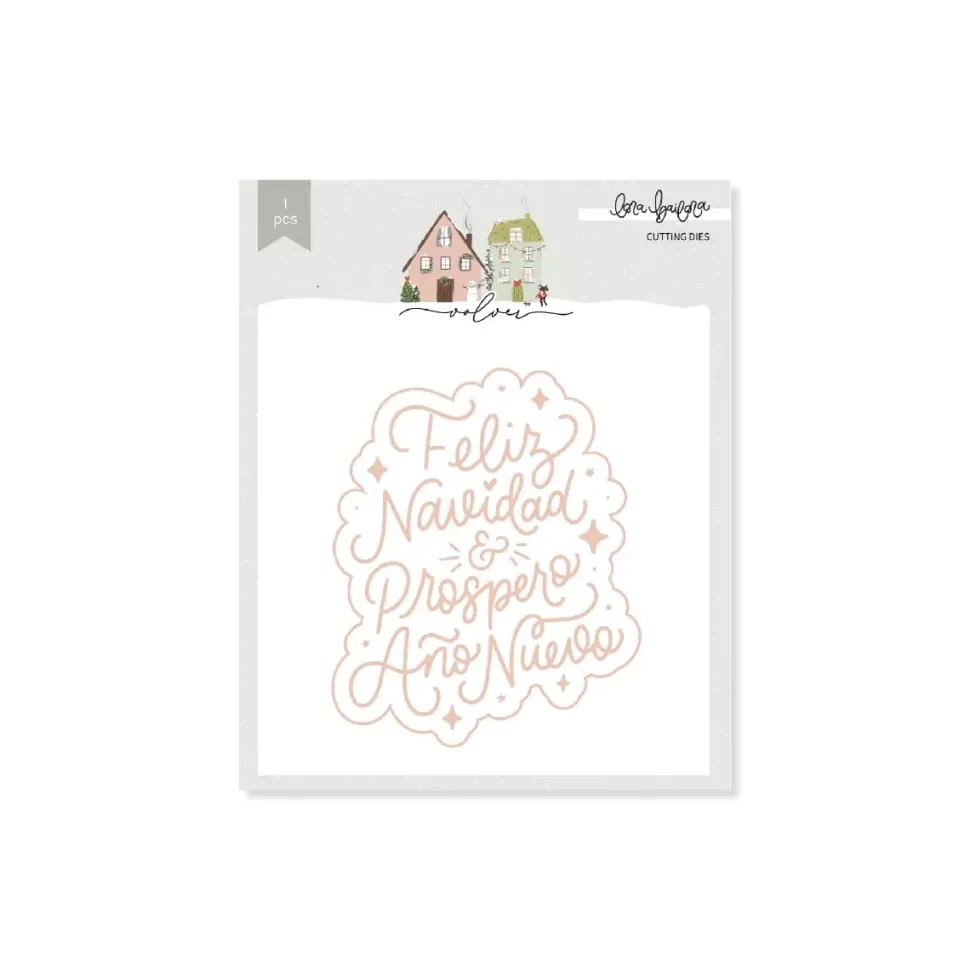 - Troquelcon el diseño de la frase «Feliz navidad y próspero año nuevo» en lettering.
