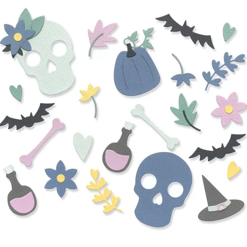 - Incluye troqueles para hacer motivos de temática de Halloween.