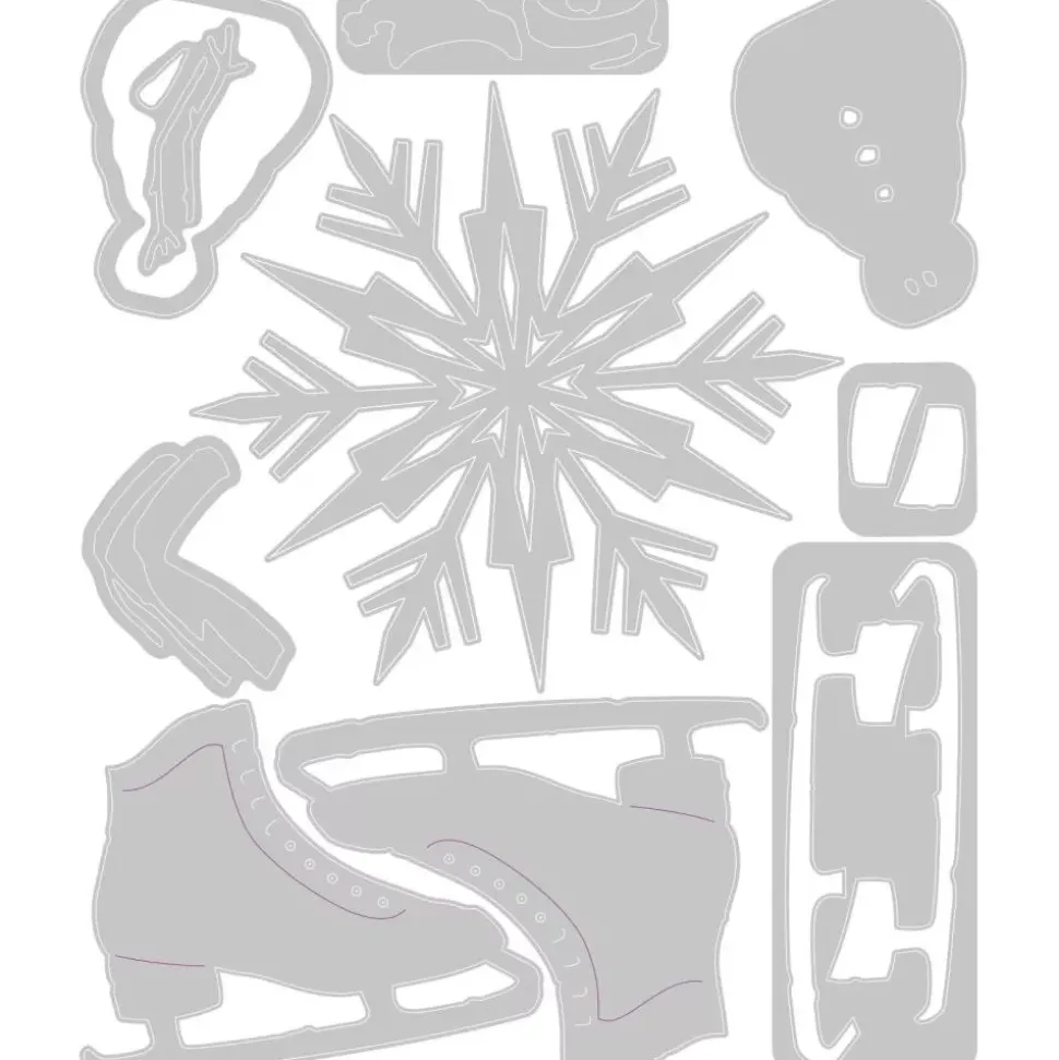 - Contiene 10 troqueles para hacer unos patines de hielo, un muñeco de nieve y un copo de nieve.
