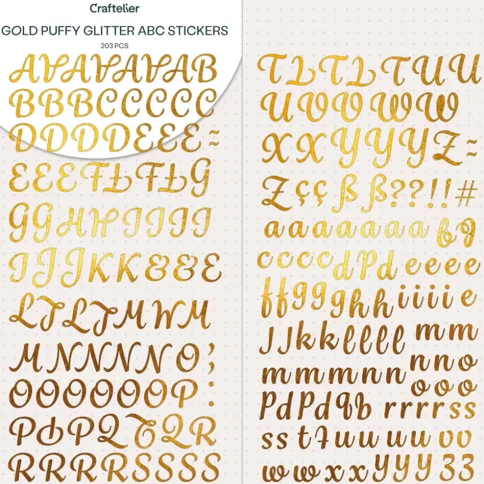 Abecedario Adhesivo Glitter Puffy Gold Craftelier