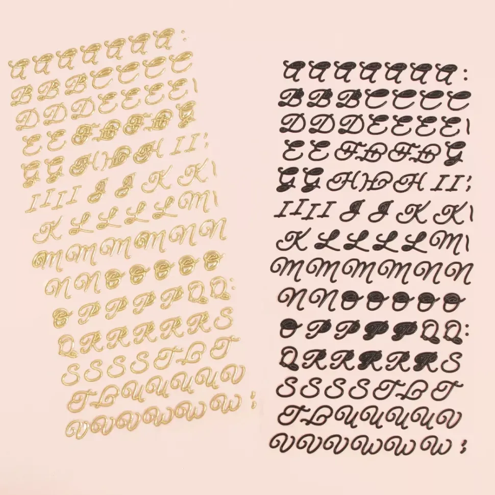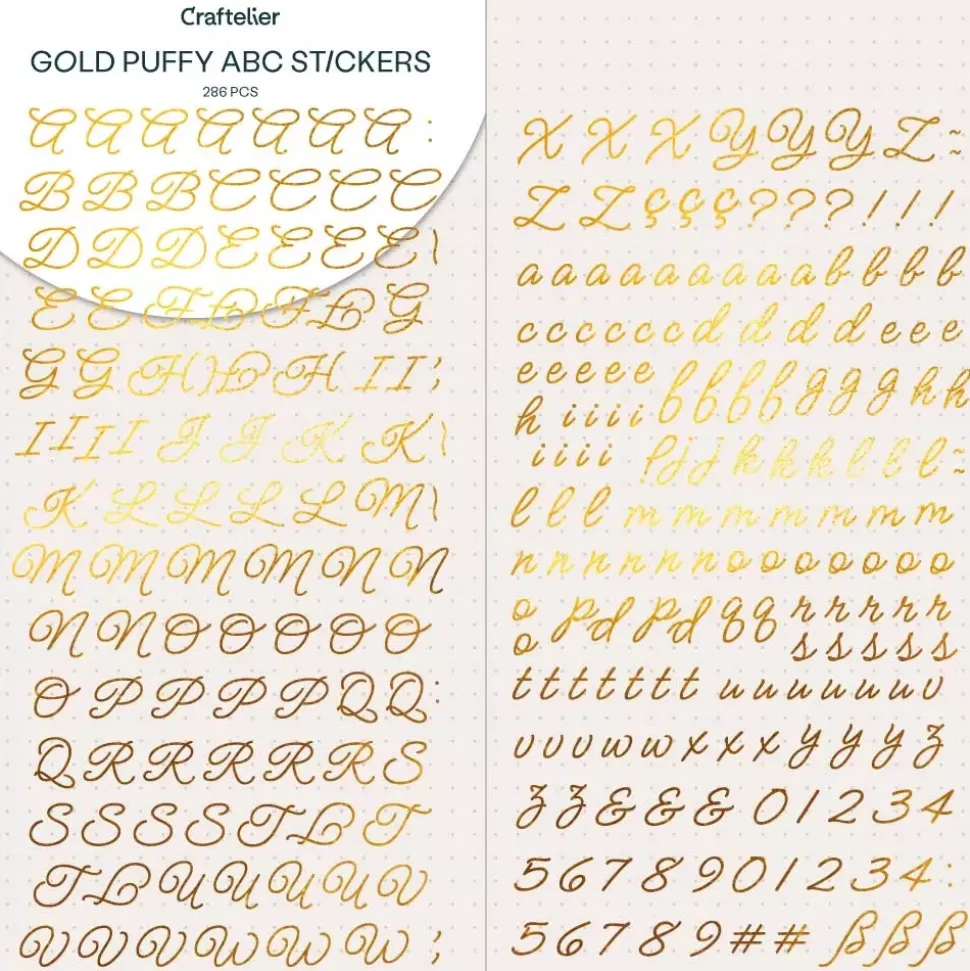 - Abecedario autoadhesivo con relieve, en color dorado.