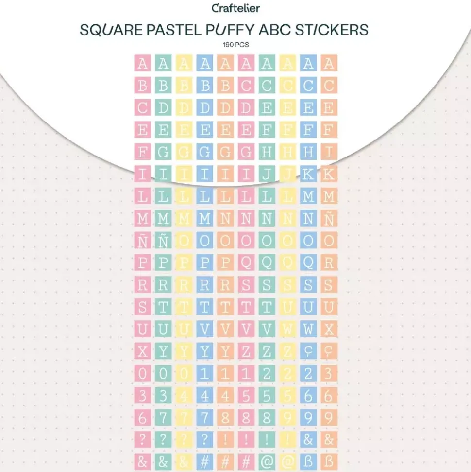 Abecedario Adhesivo Puffy Pastel Cuadrado Craftelier