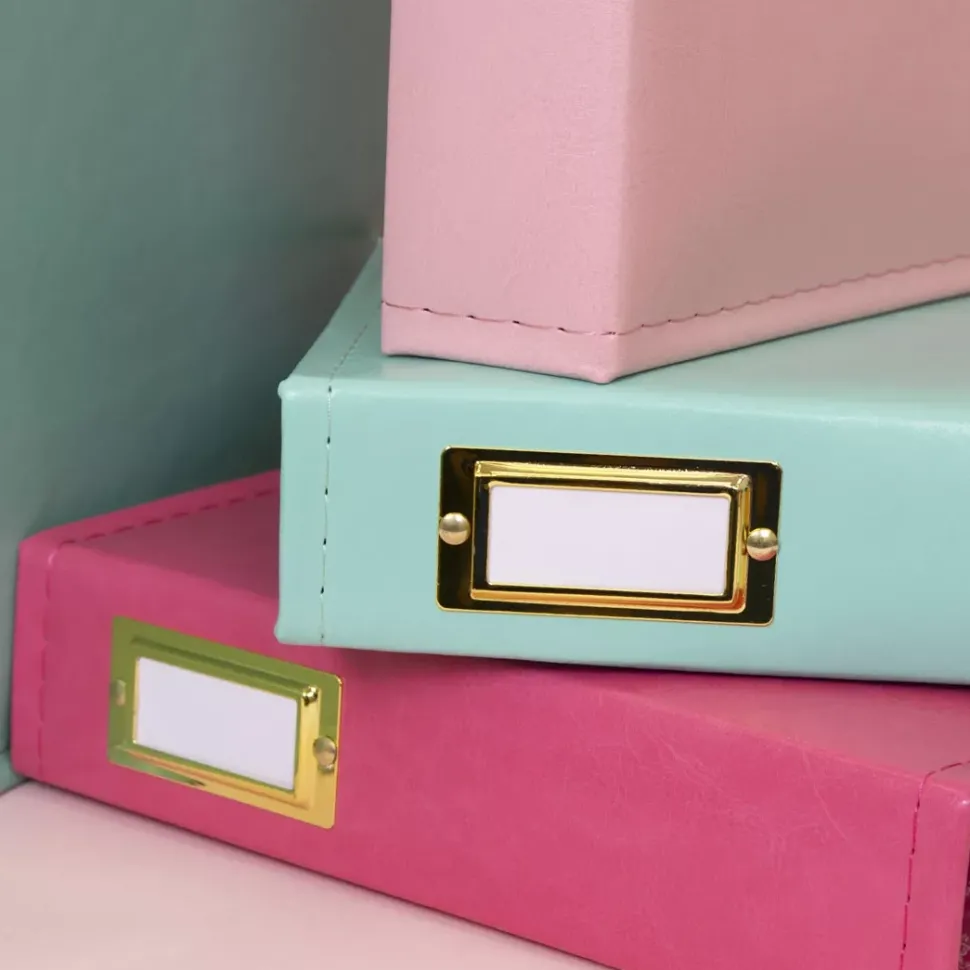 Tienen unas esquineras metálicas que los protegen de todas las veces que los cojas para verlos o enseñarlos, así como un porta-etiquetas metálico en el lomo para una mejor clasificación.