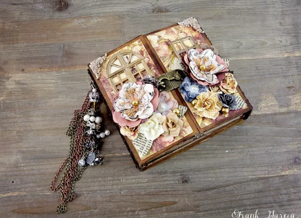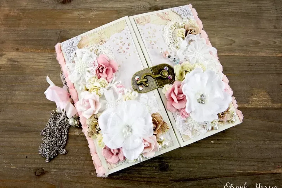 Este diario o álbum de chipboard tiene una superficie lisa y listas para decorar.