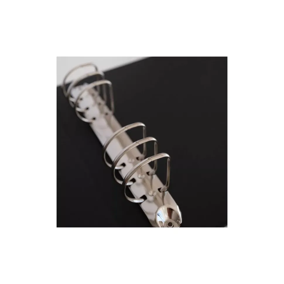 - Tiene un sistema automático de 6 anillas en color plateado.