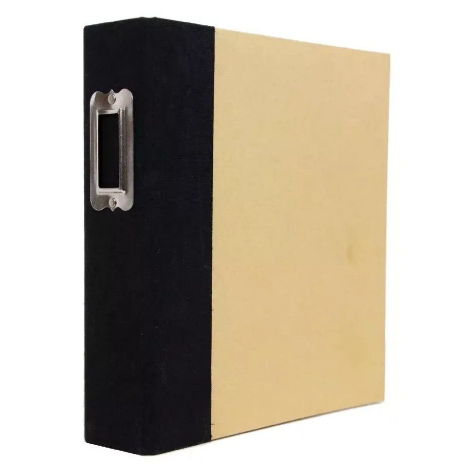 - Álbum kraft con el lomo de color negro y una etiqueta metálica.