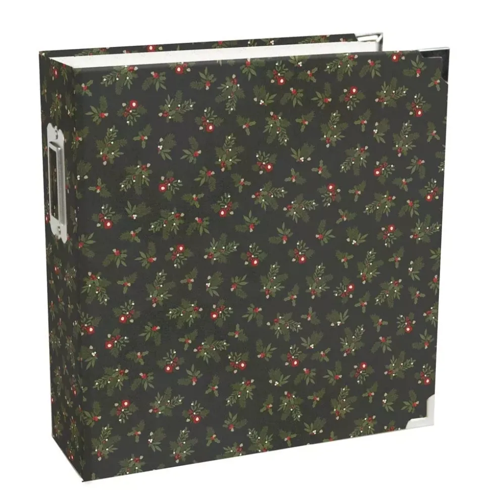 - Álbum con estampado de ramas de pino, acebo y muérdago y una etiqueta metálica.