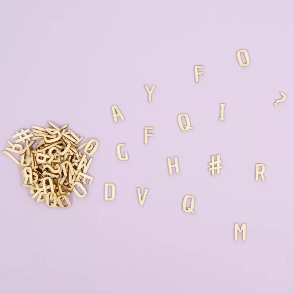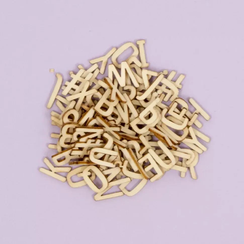 - Abecedario con letras de madera, ideales para añadir títulos o nombres a tus proyectos.