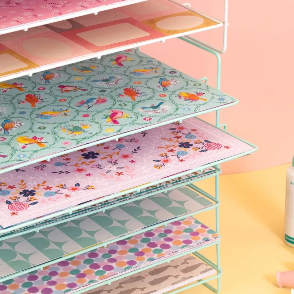- Seis bandejas apilables para organizar tus papeles de scrapbooking.