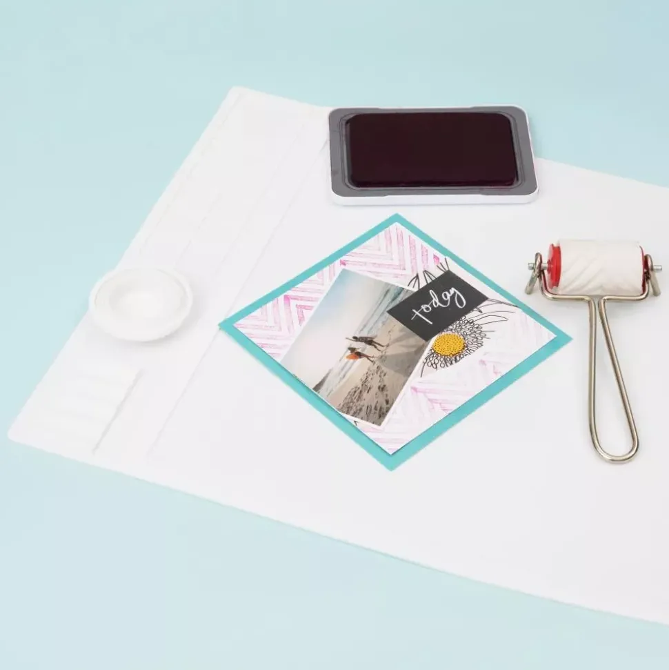 - En ella podrás mezclar tintas y pinturas, utilizar cola caliente o realizar embossing, ya que resiste al calor y se limpia con mucha facilidad.