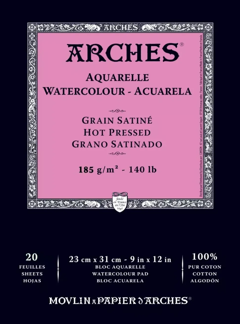 Bloc acuarela Arches encolado a 1 lado grano satinado 185 g/m² 23x31cm