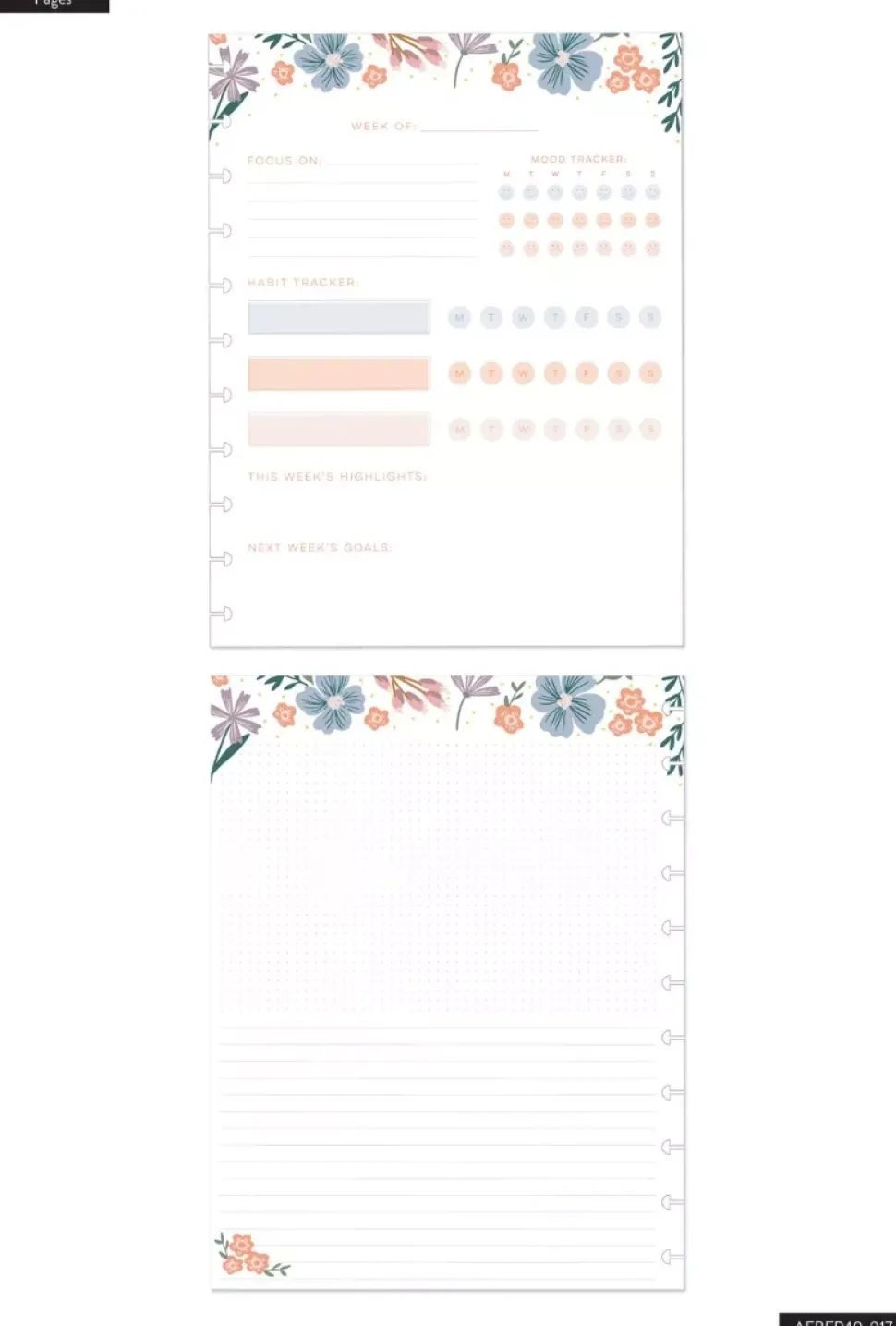 - Incluye 40 hojas pretroqueladas. Por delante tienes un tacker semanal y por detrás, espacio para anotar lo que quieras.