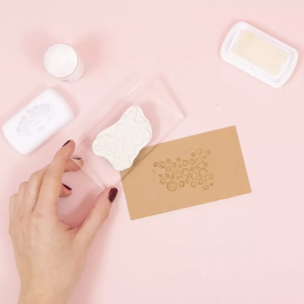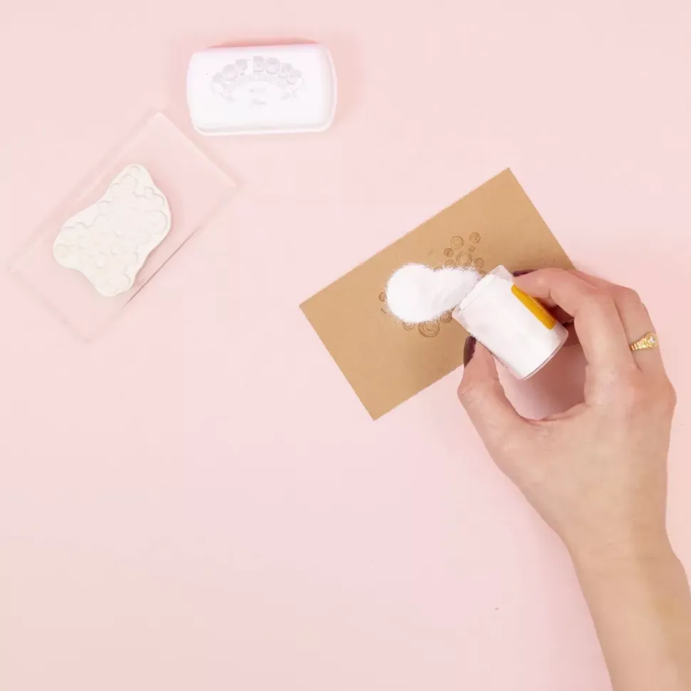 - De esta manera, evitarás que los polvos de embossing se adhieran fuera de tu estampación y conseguirás un acabado perfecto.