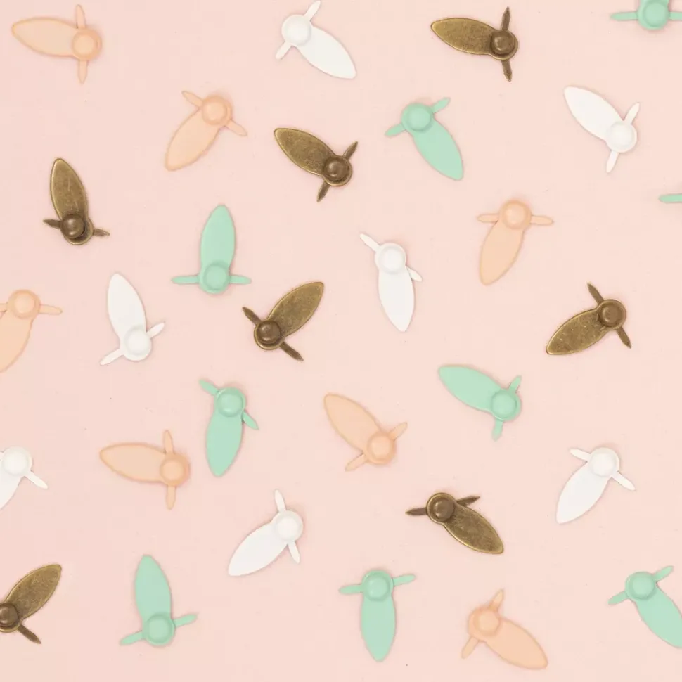 - Incluye 100 piezas: 50 brads y 50 botones de giro.