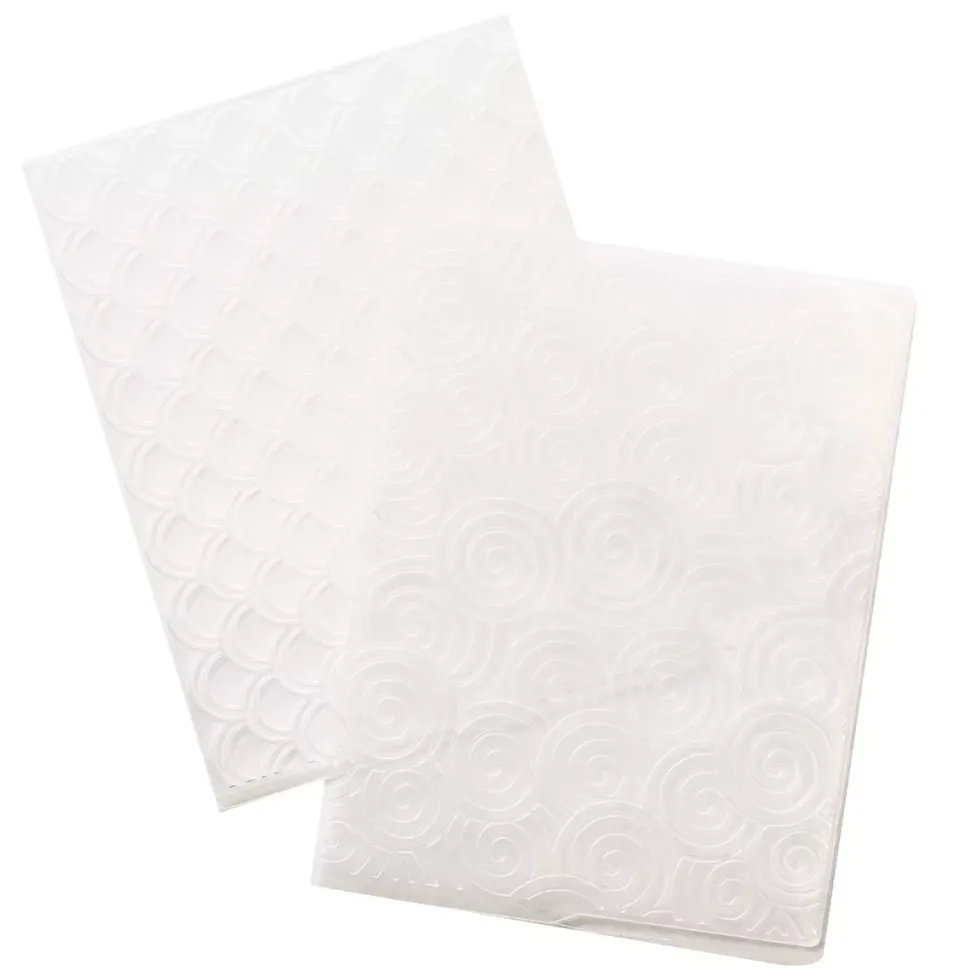 - Contiene 2 carpetas para realizar dos preciosos embossing con un patrón de remolinos y otro patrón con motivo de escamas superpuestas.