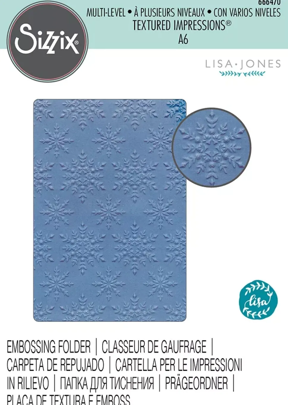 - Embossing folder compatible con las máquinas Sizzix BIGkick, Big Shot, Big Shot Pro, Texture Boutique y Vagabond.