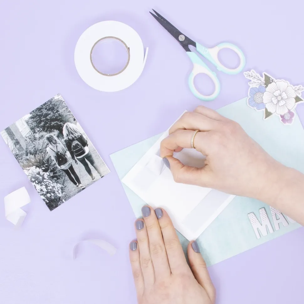 - Rollo de cinta de foam adhesiva de doble cara, perfectos para aportar dimensión a tus proyectos de scrap.