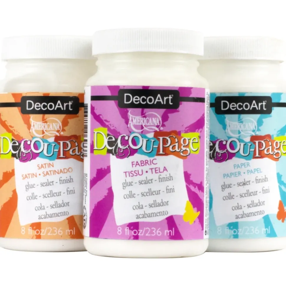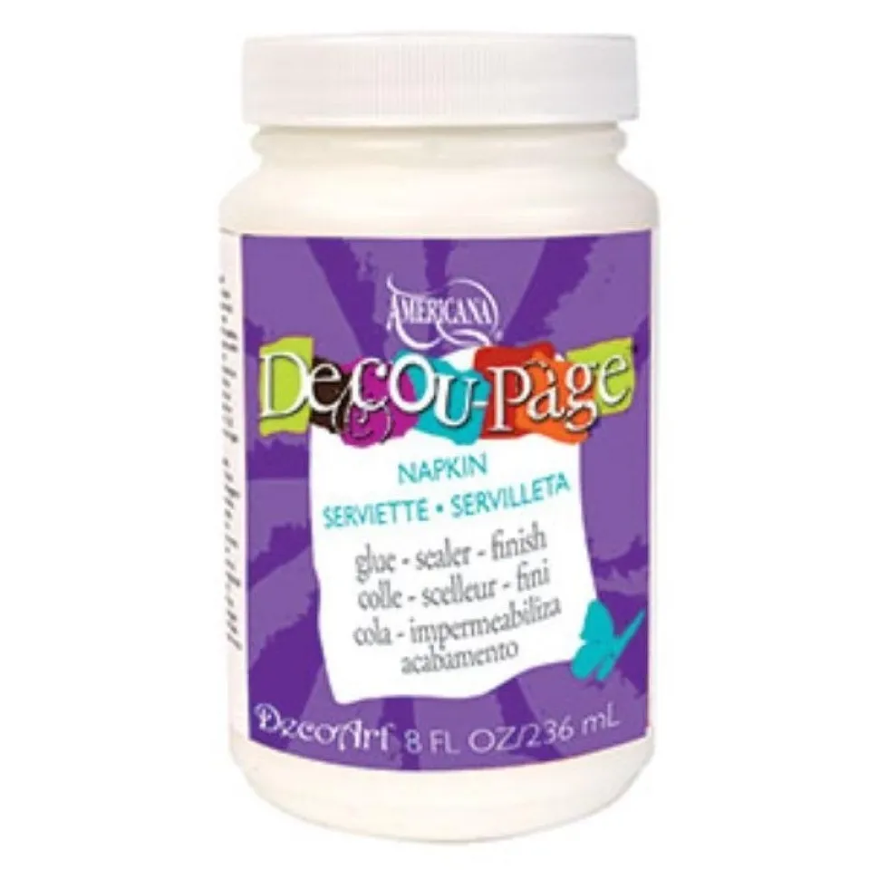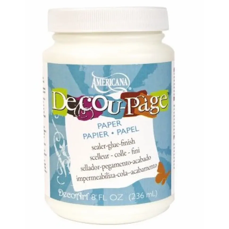 Decoupage Pegamento Sellador, disponible en acabado mate y acabado brillo.