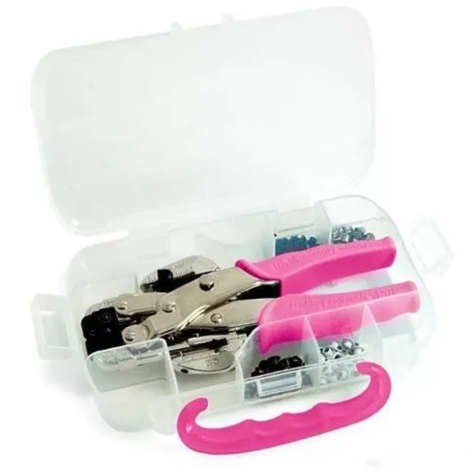 Crop-A-Dile Rosa, presentada en un estuche protector y con 100 ojales.