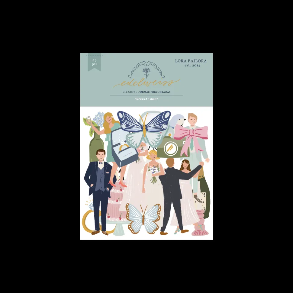 - Incluye elementos de la colección Edelweiss con temática de boda.