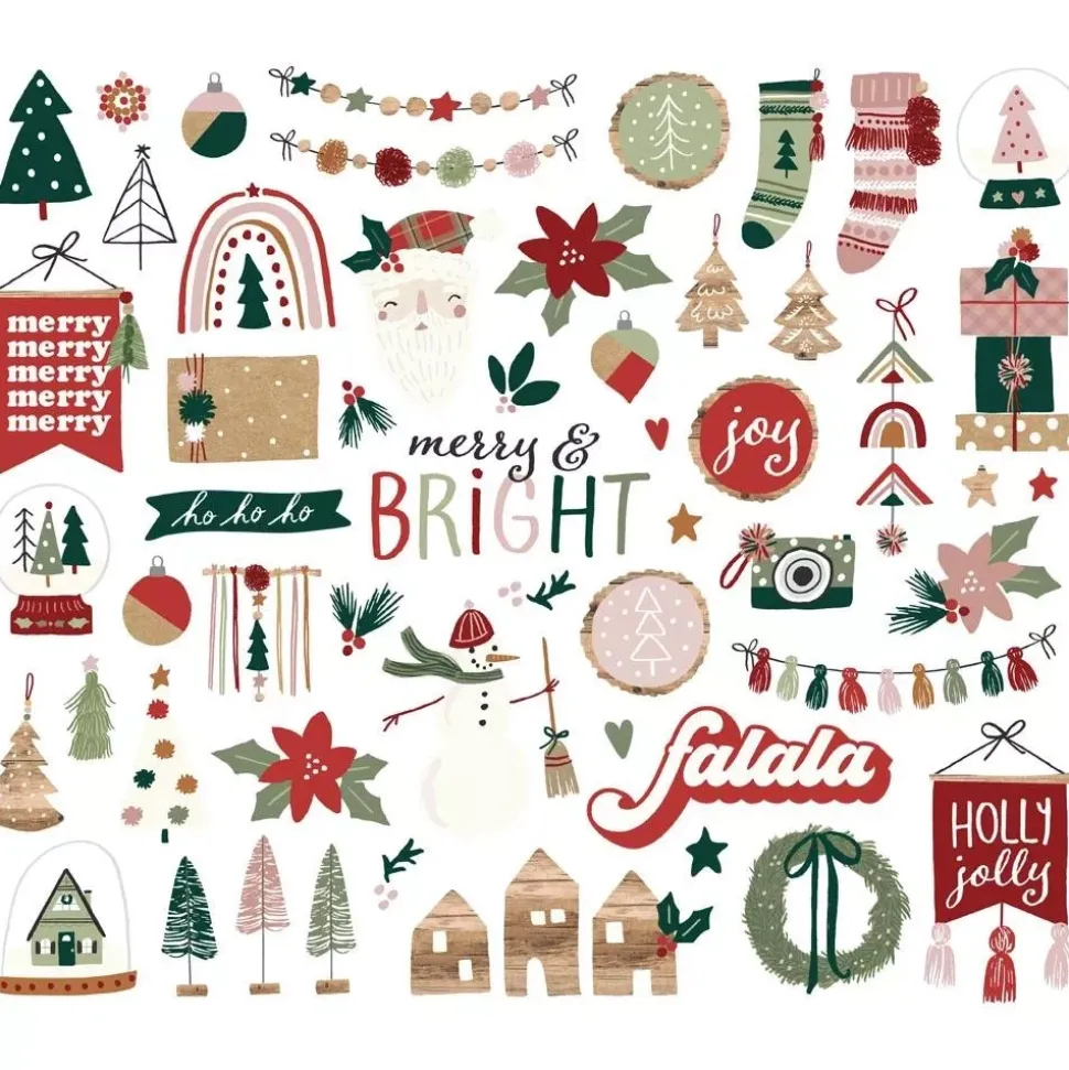 ¡Esta alegre colección te hará sonreír mientras documentas tus recuerdos de las vacaciones de este año! ¡Con una paleta de colores boho chic y adorables piezas decorativas, esta colección está llena de detalles divertidos y los acentos más lindos para todos tus proyectos navideños! Esta preciosa colección navideña combina diseños modernos con una paleta de colores con los clásicos tonos verdes y rojos y un inesperado color rosa.