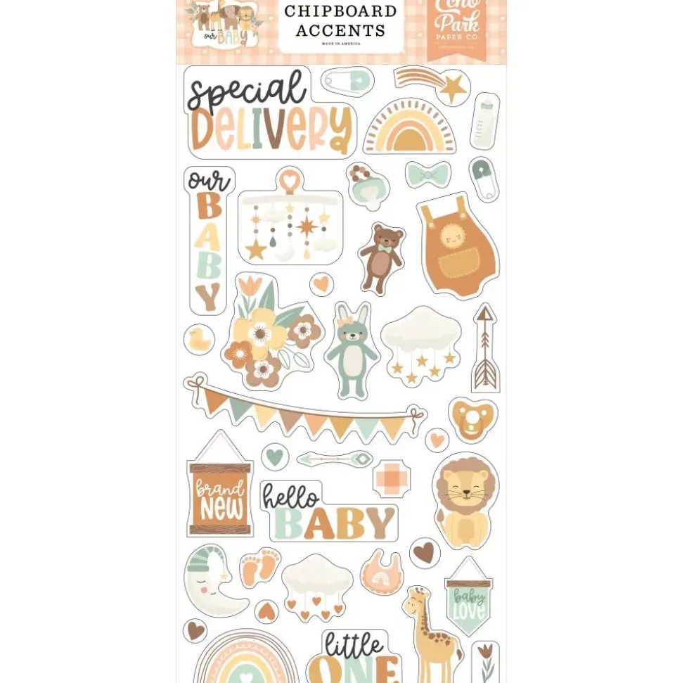 Our Baby es la nueva y preciosa colección unisex de bebé de Echo Park. Te enamorarán sus tonos tierra y sus delicadas ilustraciones de animalitos combinadas con patrones básicos. Una colección perfecta para combinar con las fotos de los más pequeños de la casa, y con la que podrás crear álbumes y layouts en los que atesorar tus mejores recuerdos. Además, podrás decorarlos con sus complementos, como die-cuts, sellos, pegatinas o troqueles. ¡Corre a por ella!
