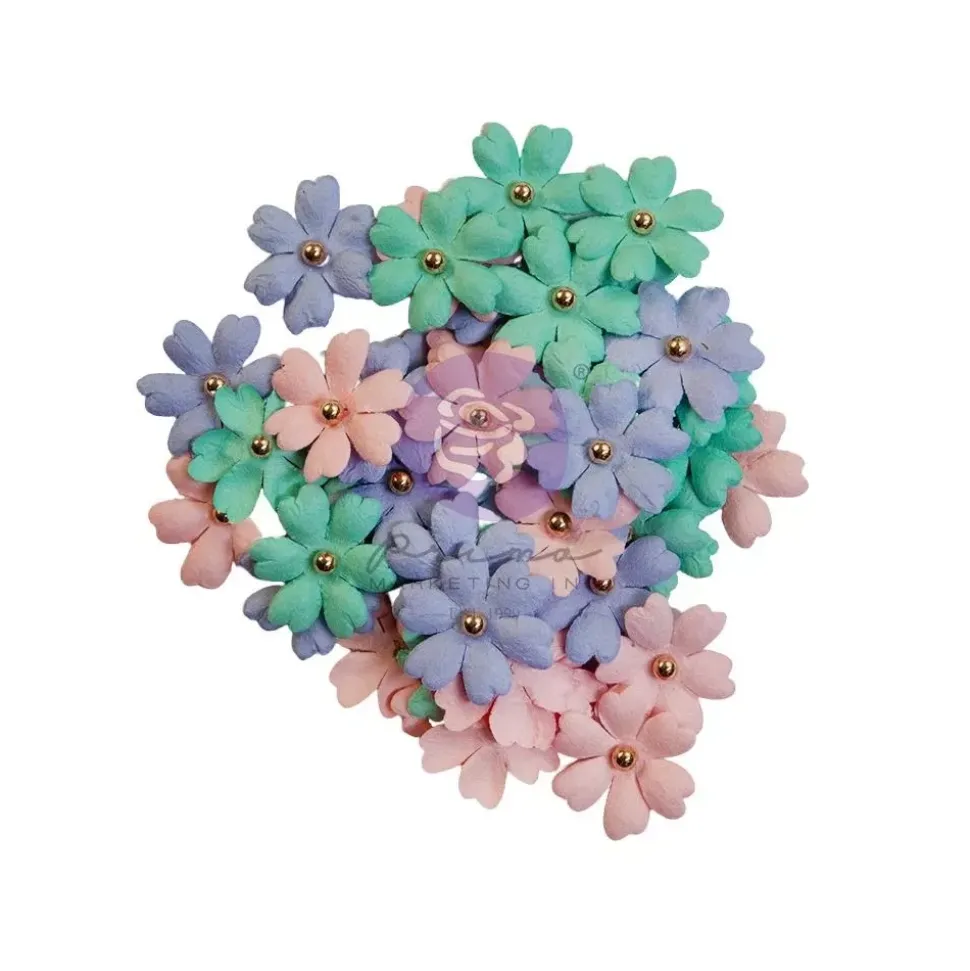 - Incluye 48 piezas de flores en tonos violeta, rosa y turquesa.