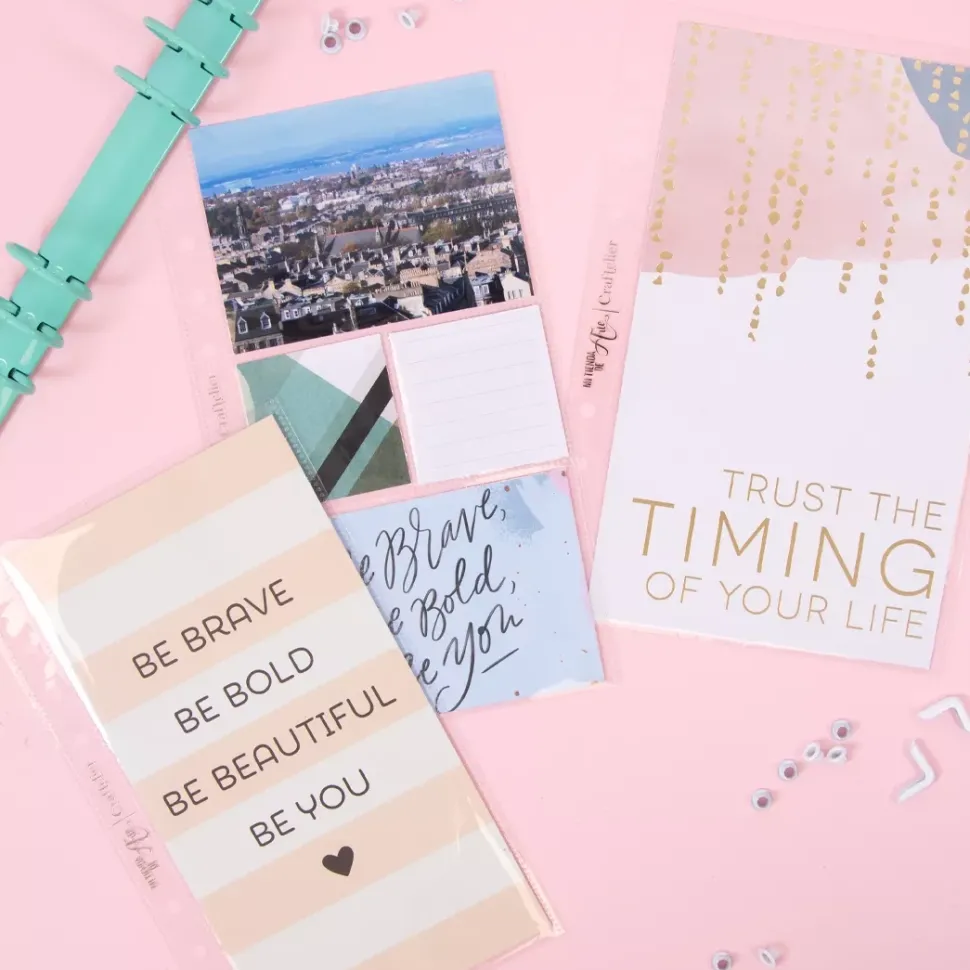 - Compatible con álbumes de Lora Bailora, Carpe Diem, agendas tipo Filofax, Color Crush de Webster’s, My Prima Planner y Kikki-k.