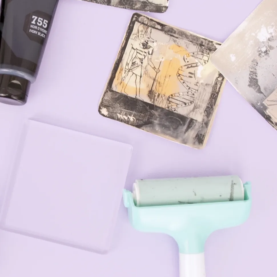 Crea máscaras con tus troqueles o plantillas de stencil, superpón varios diseños sobre un mismo papel o mezcla colores en placa de impresión para conseguir dibujos únicos.