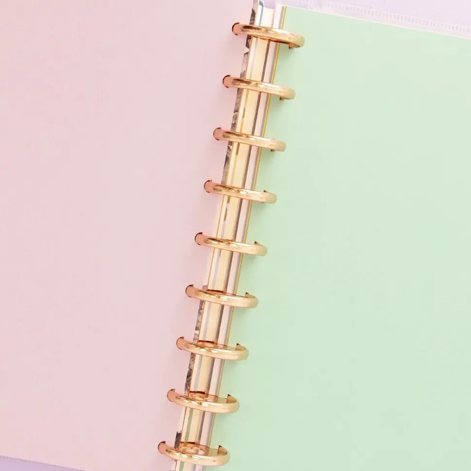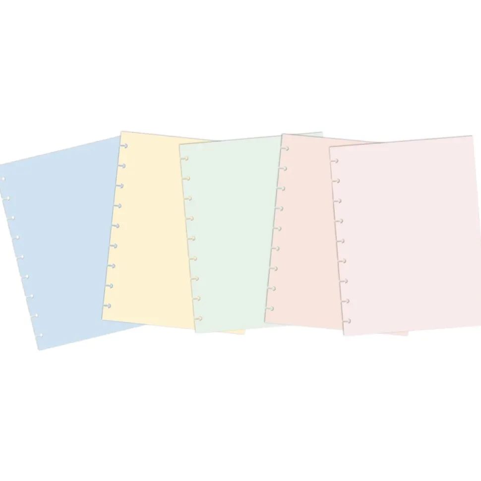 - Incluye 25 hojas pretorqueladas lisas en colores pastel para planners de disco de 9 anillas.
