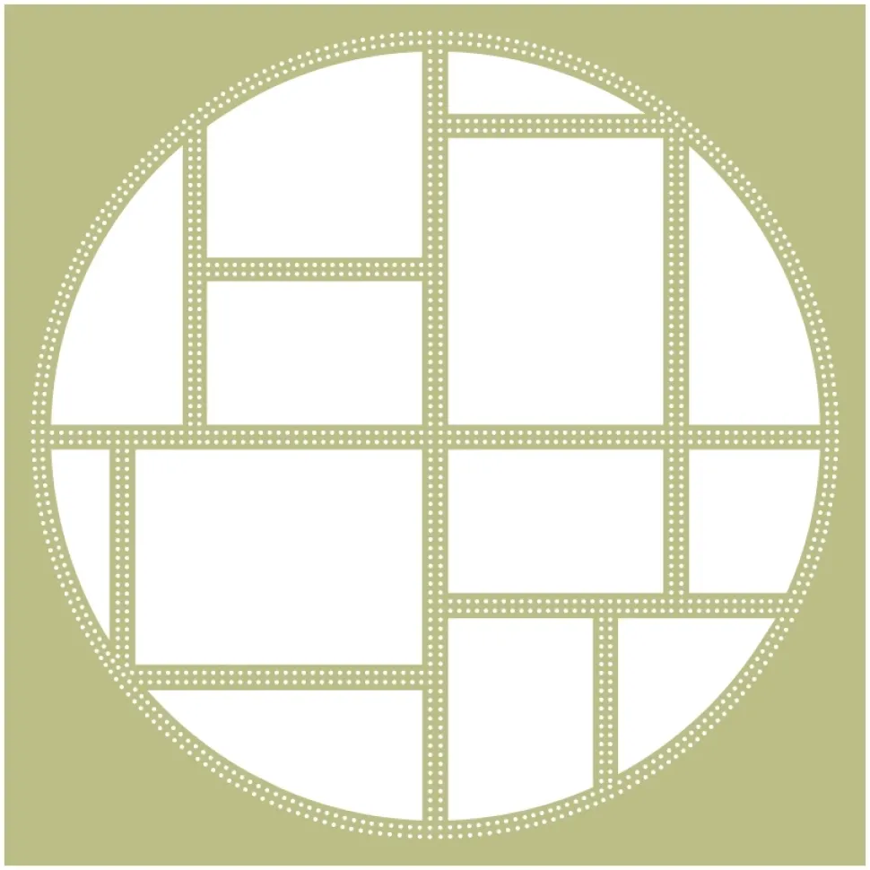 - Incluye una plantilla de fondo con patrón circular con secciones en su interior y dos pequeñas plantillas que permiten realizar composiciones variadas.